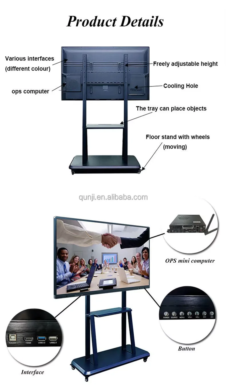 65/75/86/100/110 inch finger multi touch screen smart LCD display conference electronic digital interactive smart white board