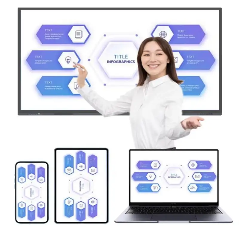 Support wireless high-definition transmission of multi-terminal screen content from computers, mobile phones, and PADs; The large screen can easily control the small screen, it is more convenient to turn page sand annotate, and the data is displayed and compared in four split screens.