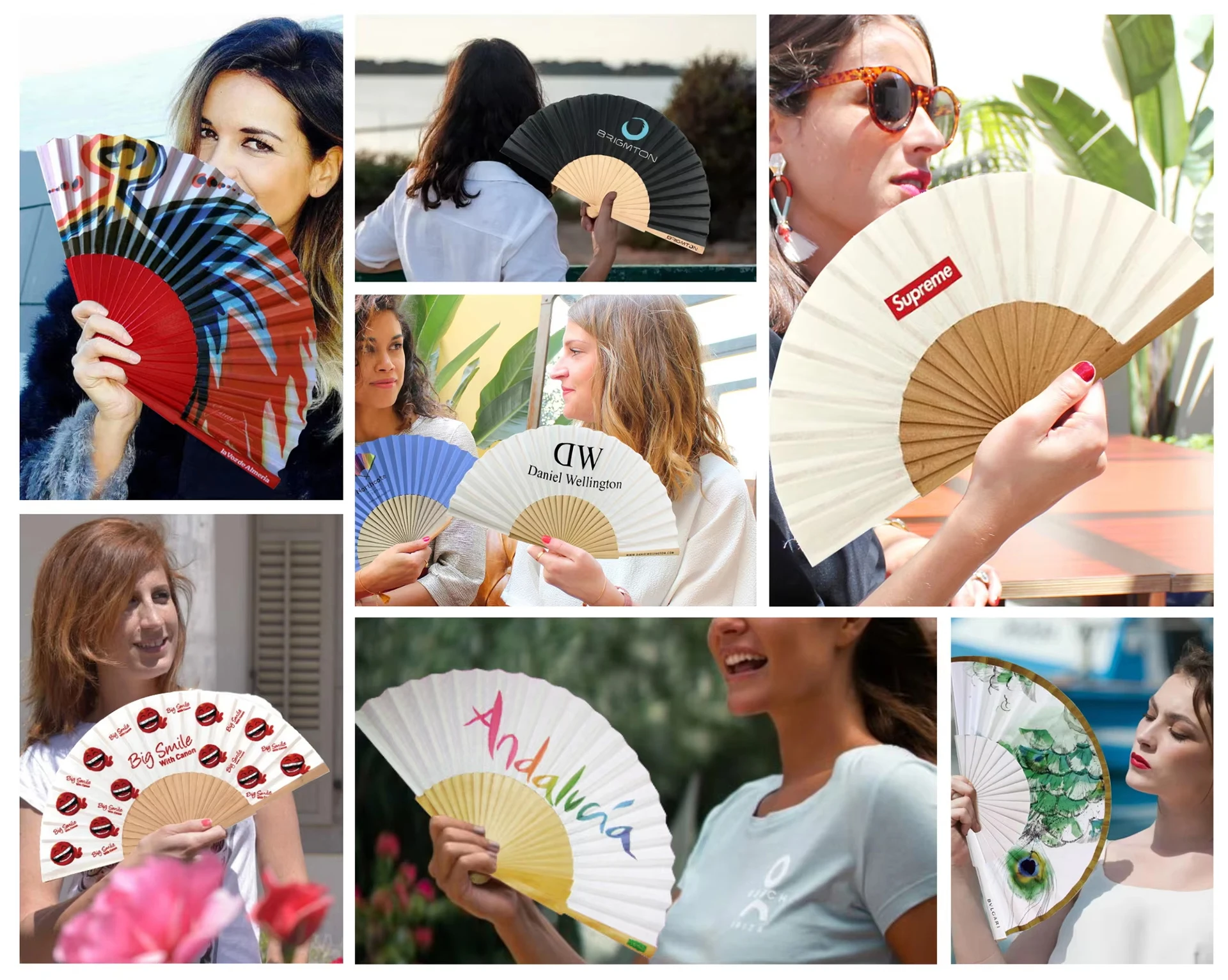 Custom Printed Logo Folding Bamboo Hand Fan Wedding Bamboo Hand Held Fabric Fans