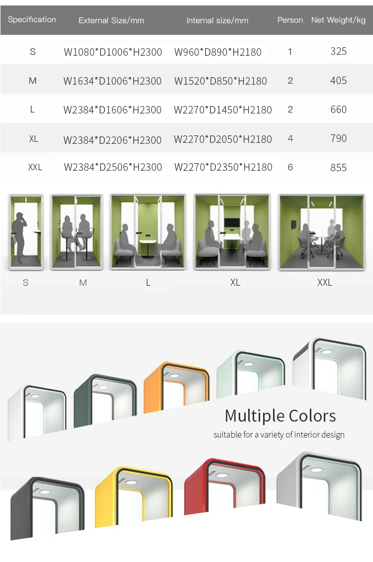 Customized 6 People Office Pod Work Space Privacy Soundproof Meeting Booth Phone Prefab Office Pod