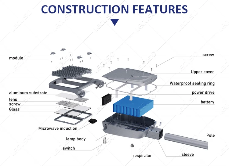 Outdoor IP66 Wide Solar Street Light Yellow All in Two 30w 50w 60w 80w 100w 120w 150w 200w Motion Sensor Solar LED Street Light