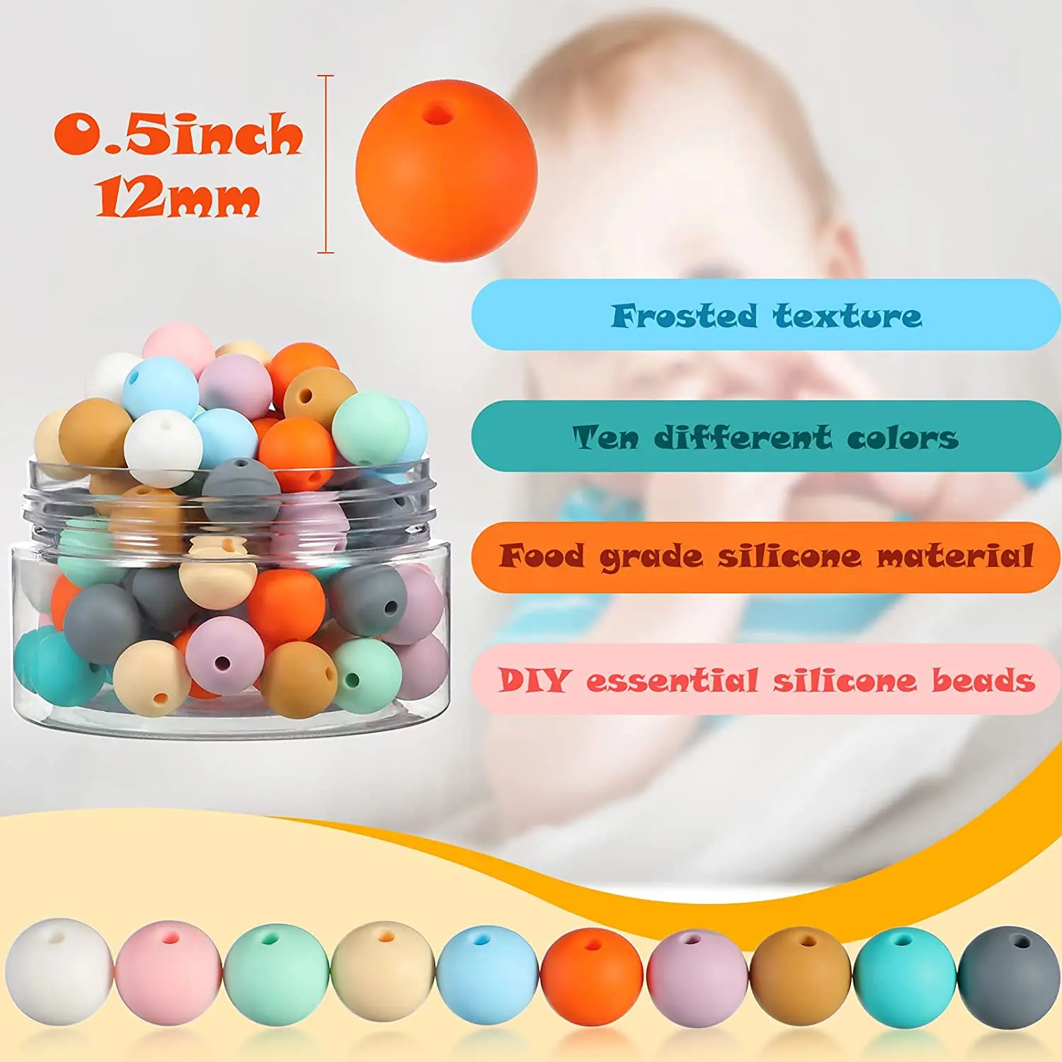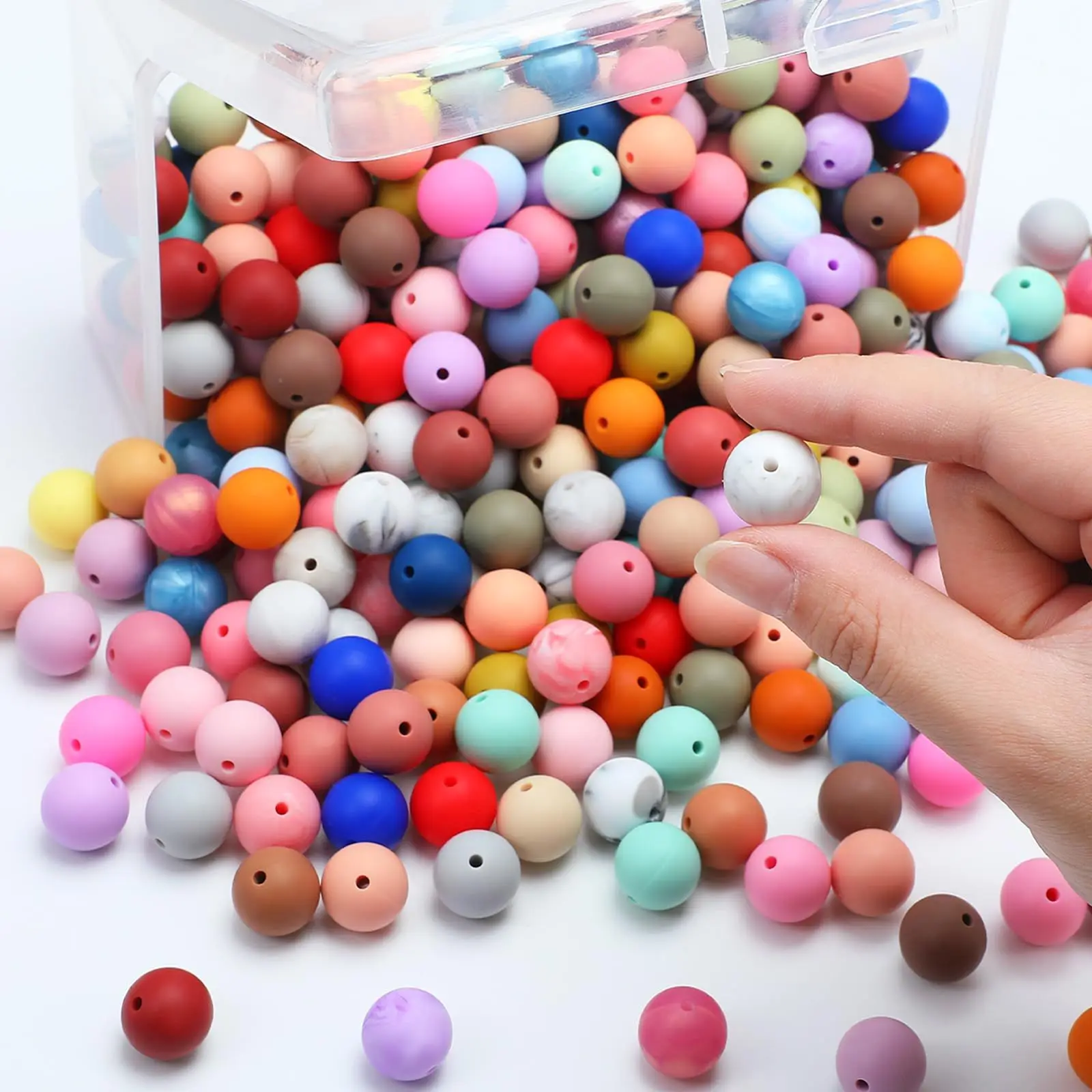 Hot Food Grade DIY Teethers Toys Nipple Holder Pacifier Chain Silicone Teething 15mm Round Silicone Beads