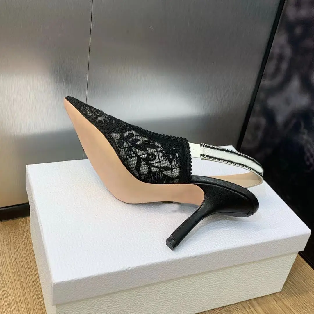 Well-known Brand Designs High-quality Luxury Embroidered Letter Ribbon Bow Pointed-toe Floral Woven Women's Shoes